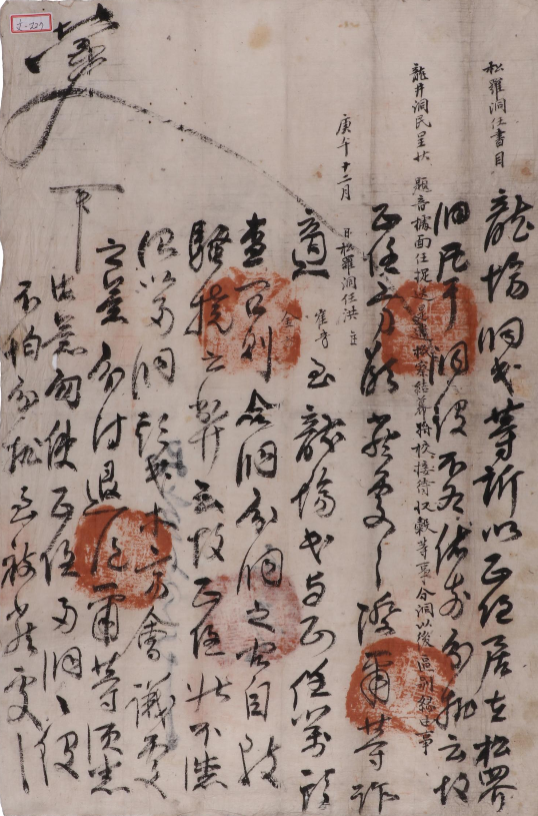 송정은 해변의 소나무 숲에서 연유한 말로, 송라정동이라고도 했다. 송라정동은 ‘솔 난 데’라는 말에서 연유했다. 마찬가지로 소나무가 많았던 데서 비롯한 명칭이다. 동해시 송정동은 전천(箭川)이 흘러들어 해구를 이루는 지대에 있다. 전천에서 흘러나온 민물이 바다와 만나면서 탁 터진 개활지를 이뤘고, 이곳을 막아둘 필요가 있었을 것이다. 소나무 숲은 삶과 직결된 문제였으리라. 이런 이유로 엄동설한 땔감이 부족했던 때조차 소나무의 벌채를 금지했다. 1810년 1월에 홍익필 등이 올린 등장(等狀), 관리번호 B007_01_A00018_001 문서에서는 큰 눈이 내렸으니 잡목을 베라하면서도 소나무의 벌목은 금지한다는 삼척부사의 처분, 즉 제음(題音)이 적혀 있다. 이처럼 중요한 소나무를 벌목한다고 하니, 실로 큰 위협으로 다가왔을 것이다. 송정동 사람들은 삼척부사에게 첩정을 올렸다. 이곳은 남양홍씨와 강릉김씨의 세거지다. 작성을 주도한 김병익은 송정동의 일을 맡아 보던 동임(洞任)으로 강릉김씨였을 것이다. 첩정은 본래 하급 관청에서 상급 관청에 보고하는 관문서로 품계가 있는 관청에서 사용했는데, 조선 후기에는 지방의 풍헌·면임·동임 등도 수령에게 보고할 때 첩정의 양식을 사용했다. 첩정을 통해 보고할 때는 일종의 요약본인 서목(書目)도 함께 제출했는데, 서목을 제출한 경우에는 판결문인 제음을 서목의 여백에 적어서 돌려보냈고, 첩정만 제출한 경우에는 첩정의 왼쪽 하단에 처분을 적었다. 아래는 서목과 서목에 적힌 제음이 있는 관리번호 B007_01_A00017_001 문서다.