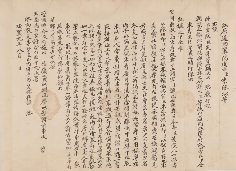 한 인물의 효행(孝行)을 세상에 널리 알리다 : 강릉 유생들의 김동수(金東秀) 정려(旌閭) 포상 요청 문서