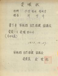1977년 영월군 자연보호 협의회에서 박영국을 위원으로 위촉한 위촉장.