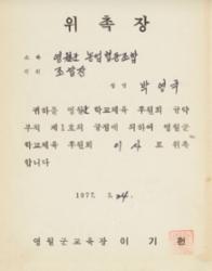 1977년 영월군 학교체육 후원회 위촉장 | 영월문화원 텍 이