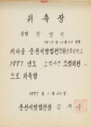 1977년 춘천지방법원에서 박영국을 소액사건 조정위원으로 위촉한 위촉장.