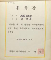 1979년 영월군 축구협회에서 박영국을 지도위원으로 위촉한 위촉장.