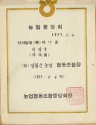 1979년 농업협동조합에서 박영국을 영월군 농업협동조합장으로 인사발령한 발령장.