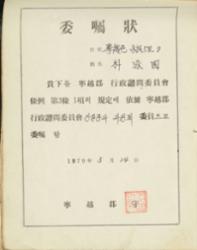 1979년 영월군 위촉장(寧越郡 委囑狀) | 영월문화원 텍 이