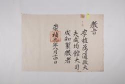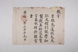 1644년 2월 24일 인조가 이식을 자헌대부 행 사헌부대사헌 겸 홍문관대제학 예문관대제학 지성균관사 동지경연춘추관사로 임명한 官敎.