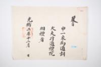 - 1876년(光緖2년) 12월에 고종(高宗)이 신일영(申一永)을 통훈대부 행 통례원 상례(通訓大夫 行 通禮院 相禮)로 임명한 관교(官敎)