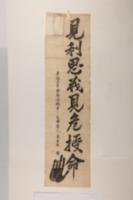 점수: 크기: 103 × 27.7 너비: 높이: 길이: 구경: 보존상태: 대체로 양호 자료형태: 安重根의 글씨 見利思義 見危授命 글씨를 탁본한 자료